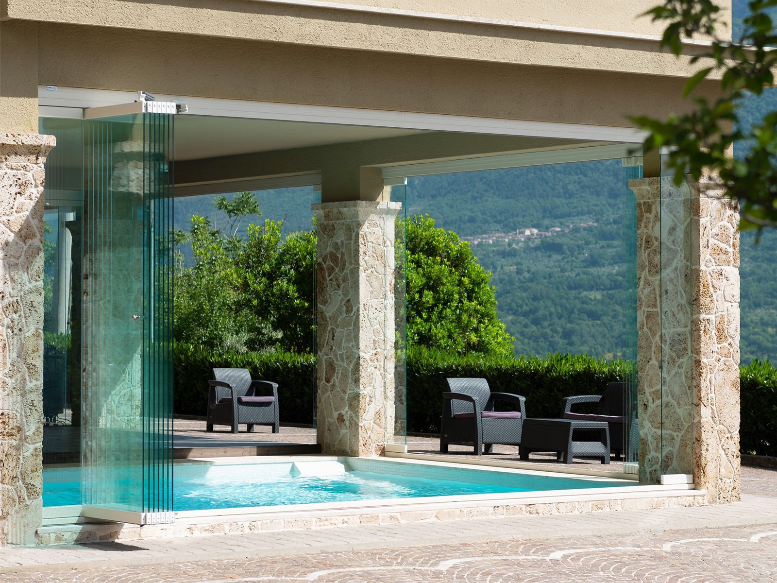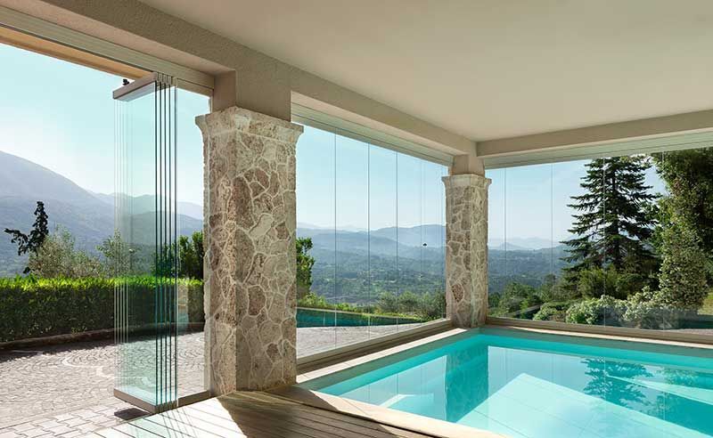 Le vetrate impacchettabili sono fatte di cristallo di alta qualità per offrire massima trasparenza in ogni ambiente. Si inseriscono bene in molti contesti, come portici, balconi, giardini e corti esterne.